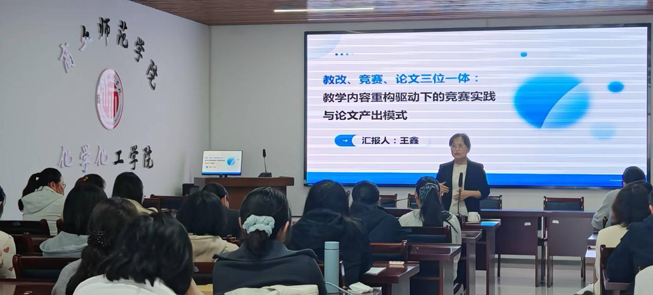 交流会上,王鑫博士以“教学内容重构驱动下的竞赛实践与论文产出模式”为题展开分享。她结合无机化学实验教学内容改革的实践,详细讲述了从参与全国大学生化学创新设计大赛,到最终将成果撰写成论文并发表于北大核心期刊《化学教育》的完整过程及心得体会,系统梳理了教学改革、实验竞赛与教改论文之间的逻辑关联与实施路径,提出“科学思维实验+教学改革落脚”的撰写技巧,并强调注重实验设计的完整性、数据支撑的详实性、讨论分析的深度以及最终成果对教学改革的实际指导意义。