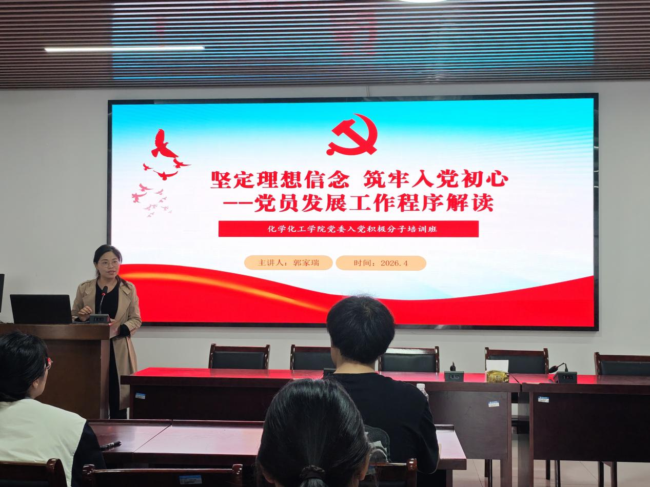 为进一步提高入党积极分子的综合素质与理论素养,2026年4月10日至4月17日,化学化工学院党委精心组织开展了第58期入党积极分子专题培训。